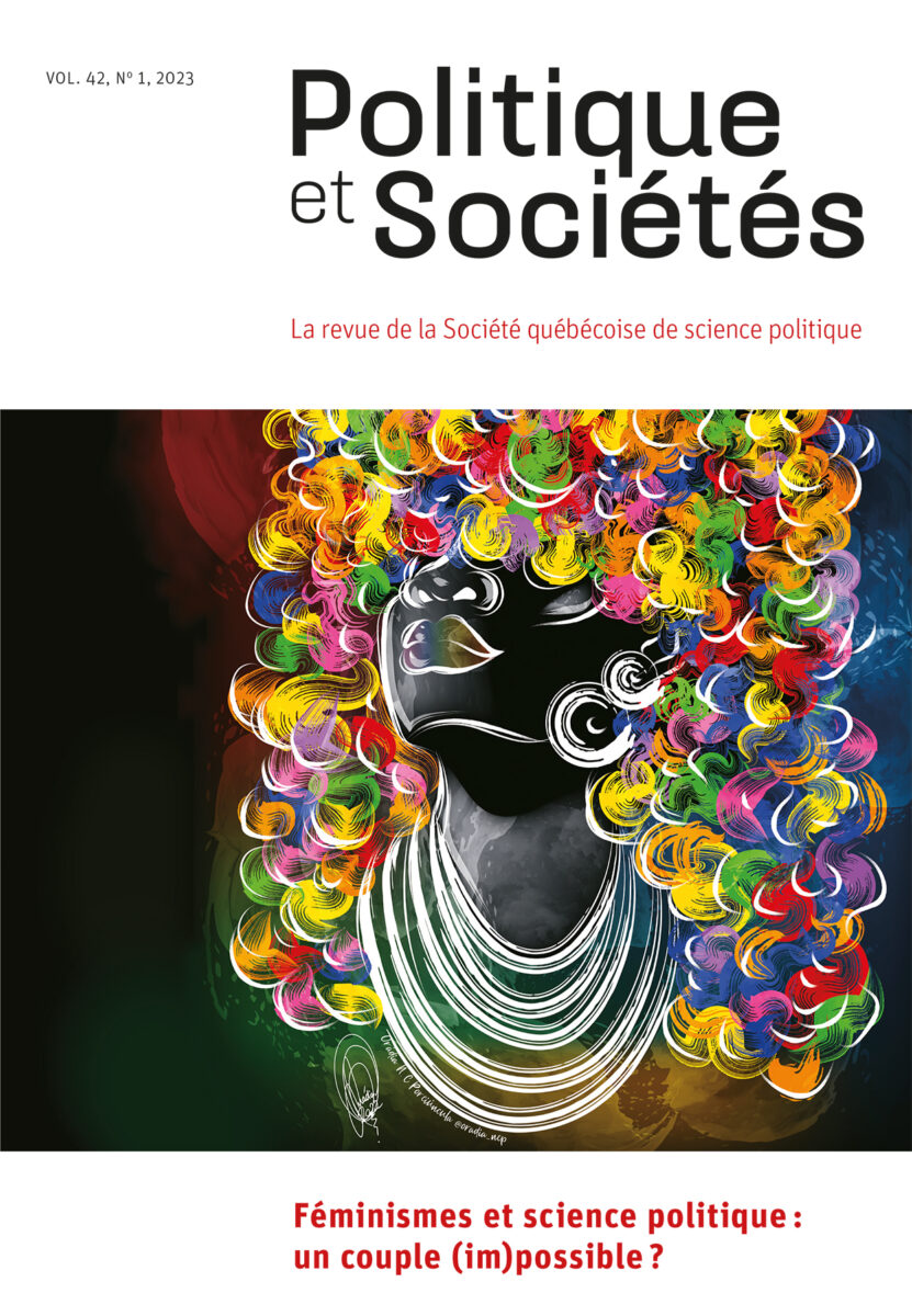 Danielle Coenga-Oliviera (science politique, UQAM) et Pryscill Anctil Avoine (science politique, UQAM) ont co-dirigé le numéro «Féminisme et sciences politiques : un couple (im) possible ? » de la revue Politique et Sociétés, auquel Anne-Marie Veillette (Africana Studies Department, U. of Pennsylvania) et Stéphanie Mayer (philosophie politique et études féministes, UOttawa) ont contribué.