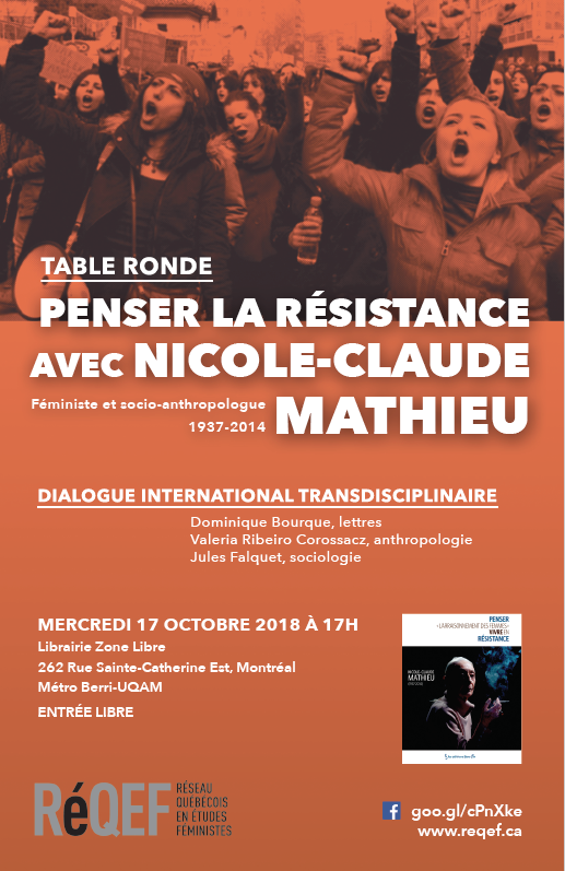 Le RéQEF a le plaisir de convier le grand public à ce dialogue international transdisciplinaire autour de l’oeuvre de Nicole-Claude Mathieu.